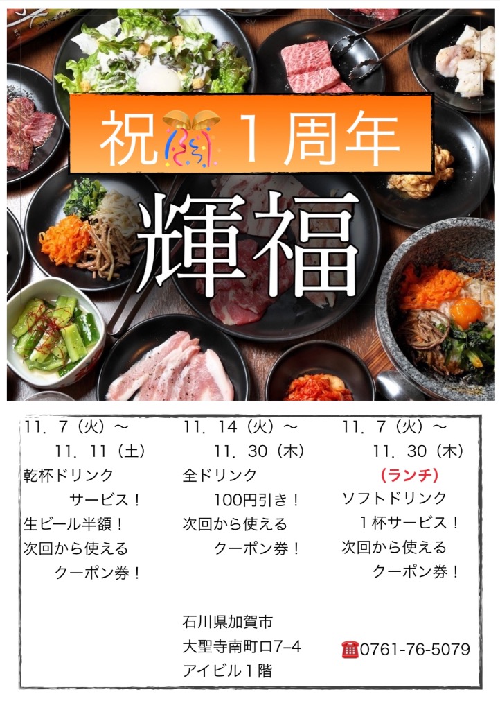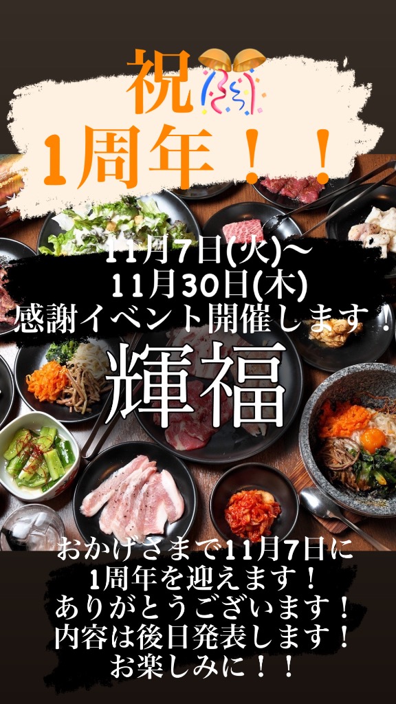 おかげさまで11月7日(火)に1周年を迎えるます!日頃の感謝を込めてイベントを開催します!